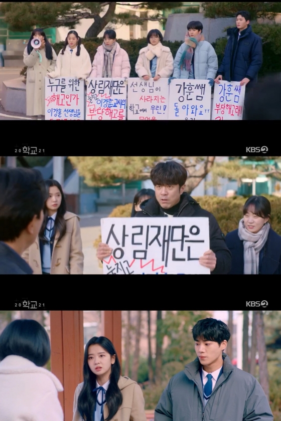 지난 6일 오후 9시 30분 방송된 KBS 2TV 수목드라마 '학교 2021'(극본 조아라, 동희선/ 연출 김민태, 홍은미/ 제작 래몽래인, 킹스랜드) 14회에서는 이강훈(전석호 분)의 부당 해고를 철회하기 위한 2학년 1반의 고군분투가 펼쳐졌다.