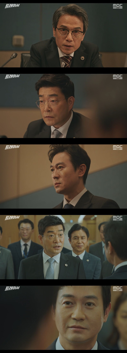 앞서 오영(박용우 분)과 박성호(연제욱 분)가 조세 5국장 직을 놓고 대결했다. 오영이 후보에 오르자 '17년 전 명주 단자 사건을 일으킨 당사자다', '언제 적 얘길 하는 거냐'며 의견이 분분했다. 인태준은 "제 생각에 오영 과장의 후보 자격은 충분한 거 같다. 징계기록도 말소됐죠. 17년의 세월이라면 반성의 시간도 충분하고요. 무엇보다 백승룡(박지일 분)청장님의 확신이 없으셨다면 후보로 올리는 일이 가능했을까요"라고 설명했다.