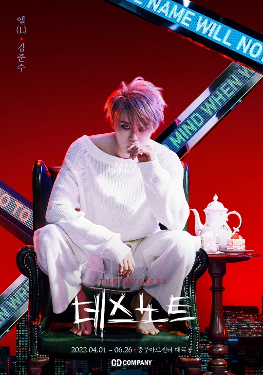 특히 전날 제작사인 오디컴퍼니 공식 SNS를 통해 캐스팅 확정 소식과 함께 공개된 김준수의 캐릭터 포스터는 뜨거운 화제를 불러일으키고 있다. 김준수의 강렬한 눈빛과 더불어 엘의 시그니처인 화이트 의상은 강렬하고 화려한 배경과 대비되어 시선을 사로잡는다.
