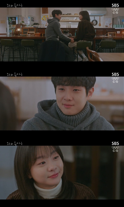 25일 방송된 SBS 월화드라마 '그해 우리는'에서는 최웅(최우식 분)과 국연수(김다미 분)이 이솔이(박진주 분)네 가게에서 만나는 모습이 담겼다.