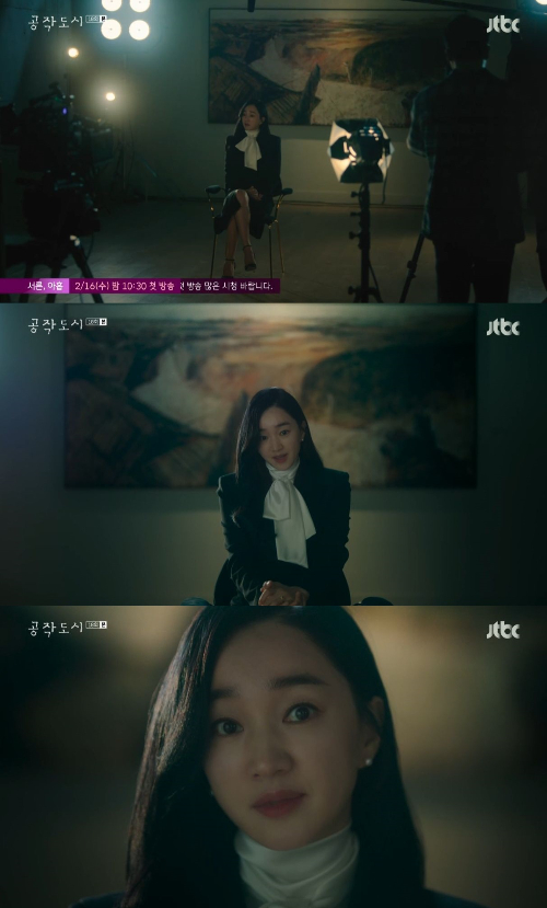 3일 오후 방송된 JTBC 수목드라마 '공작도시'에서 윤재희(수애 분)가 카메라 앞에서 '영부인의 역할'에 관해 인터뷰하는 모습이 담겼다.