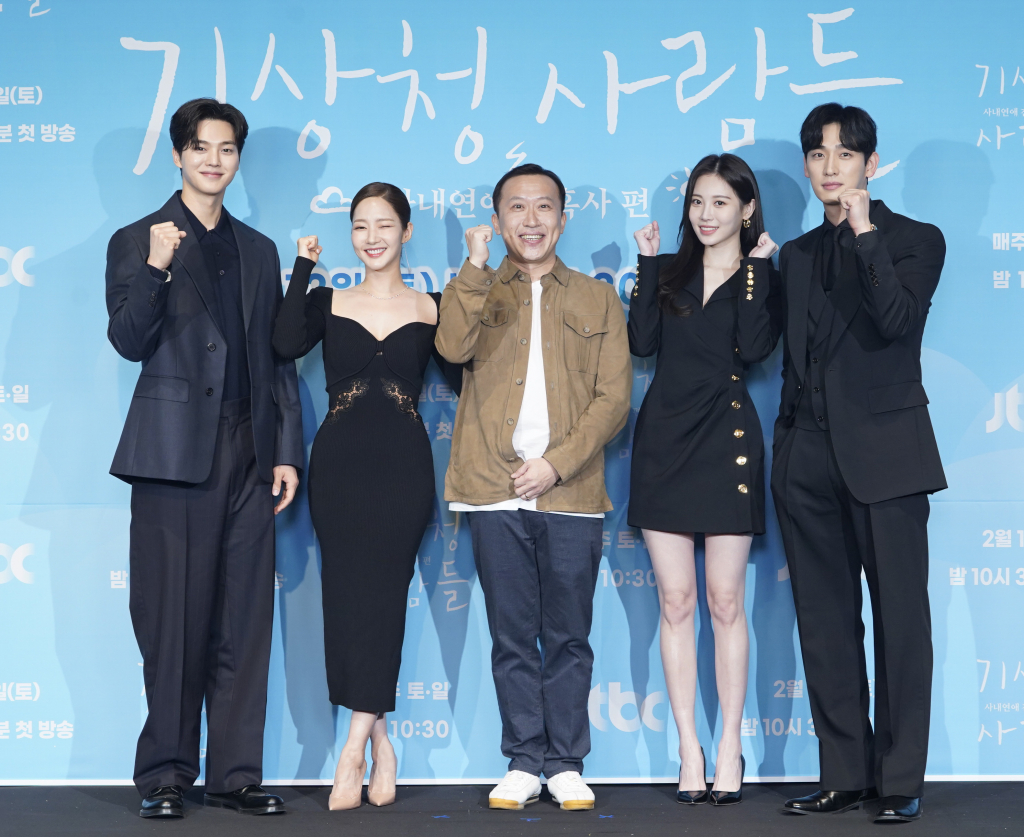 11일 오후 JTBC 토일드라마 '기상청 사람들 : 사내연애 잔혹사 편'(극본 선영, 연출 차영훈, 이하 '기상청 사람들') 온라인 제작발표회가 열렸다. 차영훈 감독, 박민영, 송강, 윤박, 유라가 참석했다.