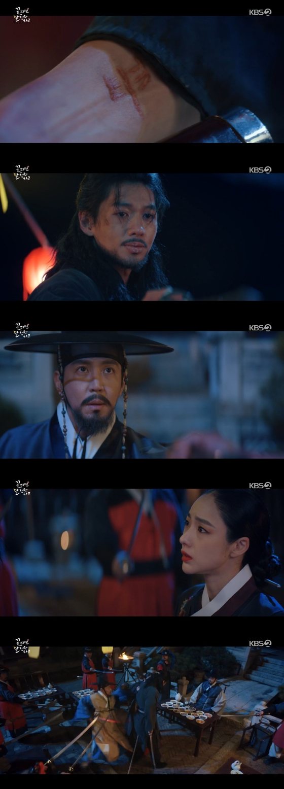 22일 오후 방송된 KBS 2TV 월화드라마 '꽃 피면 달 생각하고'에서는 운심(박아인 분)이 이시흠(최원영 분)에게 칼을 겨누는 모습이 담겼다.