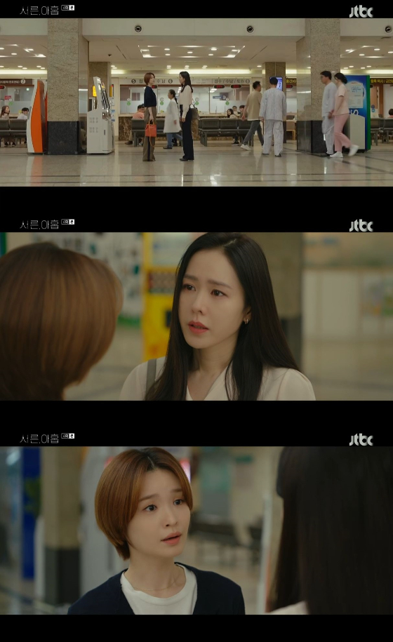 24일 오후 방송된 JTBC 수목드라마 '서른, 아홉'에서 정찬영(전미도 분)이 차미조(손예진 분)과 함께 병원에서 진단을 받는 모습이 담겼다.