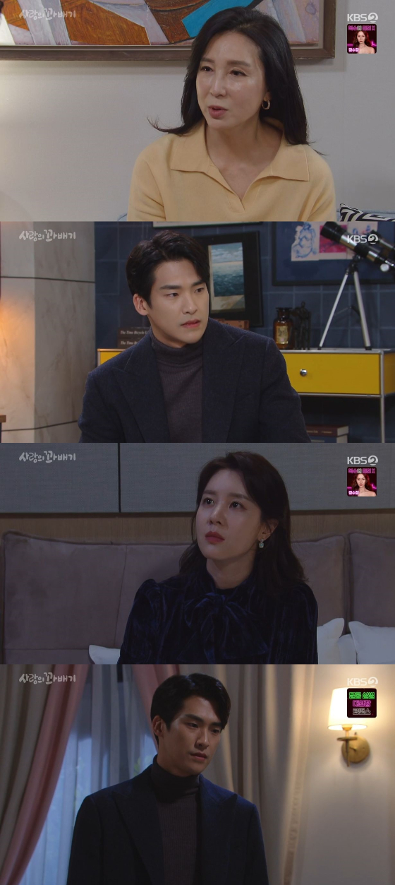 28일 오후 방송된 KBS 2TV 일일드라마 '사랑의 꽈배기'에서는 맹옥희(심혜진 분)가 박하루(김진엽 분)의 방에 들어오는 모습이 담겼다.