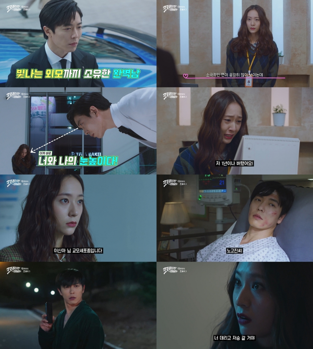 특히 '크레이지 러브: 대환장 프롤로그'에는 대한민국 최고의 일타 강사이자 고탑(GOTOP)교육 대표 노고진(김재욱)과 그의 슈퍼을 비서 이신아(정수정)가 왜 미친者(자)로 돌변할 수밖에 없었는지, 그 흥미진진한 이유를 담겨 있어 눈길을 끈다. 돈 밖에 몰라 능력 없는 직원은 가차없이 자를 수 있는 까탈스럽고 예민한 '노차반' 고진 때문에 언제나 한없이 작아지는 신아. 하지만 그녀는 "이 지옥에서 1년을 버틴 기적의 비서"다. 이런 뿌듯한 이력도 잠시, 뇌종양으로 살 날이 1년도 채 남지 않았다는 청천벽력을 맞는다.
