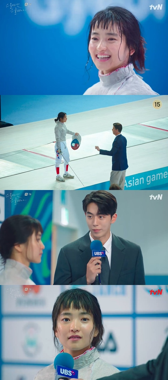 '스물다섯 스물하나' 김태리가 경쟁자 보나를 꺾고 경주 아시안 게임 여자펜싱 금메달리스트가 됐다.