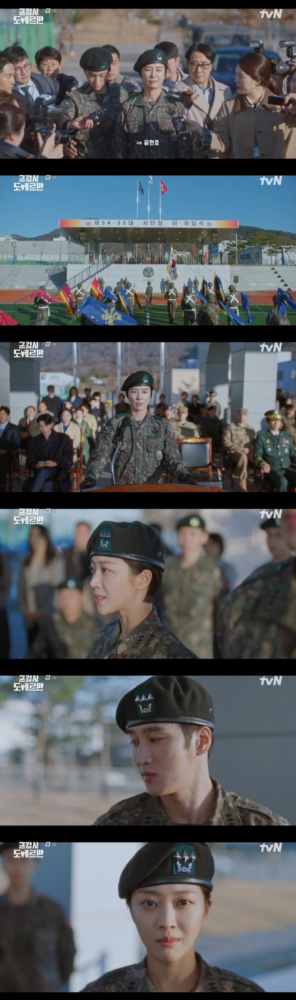 7일 오후 방송된 tvN 월화드라마 '군 검사 도베르만'에서는 노화영(오연수 분) 사단장 취임식이 열리는 모습이 담겼다.