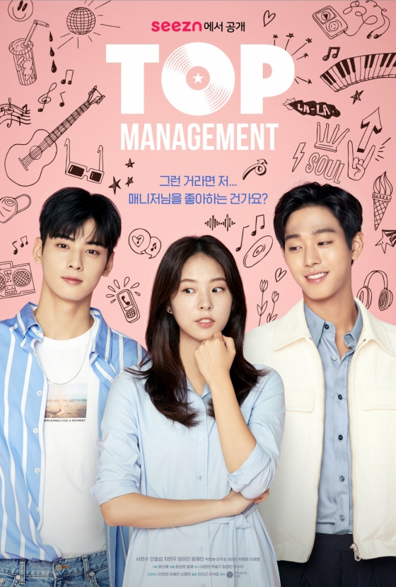 동명의 웹소설을 원작으로 한 드라마 '탑 매니지먼트'는 한치 앞도 보이지 않는 아이돌 그룹 'S.O.U.L'(차은우, 정유안, 방재민)과 몽골에서 온 싱어송라이터 유튜브 스타 '수용'(안효섭 분), 예지력을 지닌 연습생 출신의 매니저 '은성'(서은수 분)이 펼치는 파란만장 차트 역주행 프로젝트다.