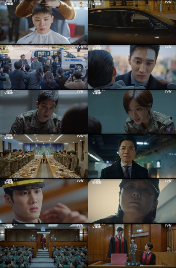 그리고 드디어 시작된 노태남의 군사재판. 군판사가 재판의 시작을 알리자 법정문이 열리면서 법복을 입은 도배만이 등장, 또 한번 반전 엔딩을 장식했다. 제대한 줄 알았던 도배만이 보란 듯 법정에 나타나자 그에게서 시선을 떼지 못하는 차우인과 일순간 당황한 것을 감추고 포커페이스를 유지한 노화영, 용문구, 그리고 노태남의 표정은 짜릿한 카타르시스를 선사하기 충분했다. 부모님의 복수를 위해 손을 잡은 도배만과 차우인, 이들의 공조는 한층 더 살벌해질 전쟁의 시작을 알리며 빌런들을 싹쓸이 할 두 군검사의 예사롭지 않은 활약을 향한 기대감이 치솟고 있다.