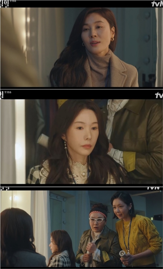 9일 오후 방송된 tvN 수목드라마 '킬힐'에서 우현(김하늘 분)이 휴지 방송을 떠맡았다.