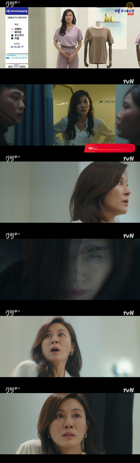 10일 오후 방송된 tvN 수목드라마 '킬힐'에서는 쇼호스트 우현(김하늘 분)이 방송을 하는 모습이 담겼다.
