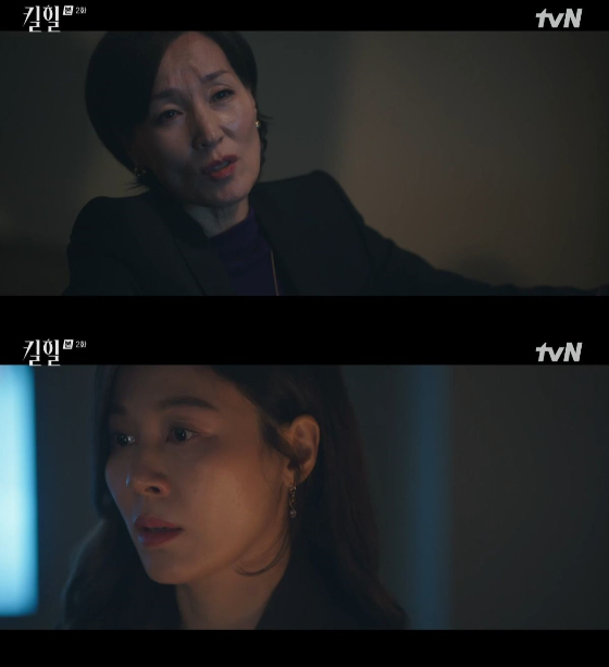 10일 오후 방송된 tvN 수목드라마 '킬힐'에서는 유니 홈쇼핑 전무 모란(이혜영 분)이 우현(김하늘 분)에 전화하는 모습이 담겼다.