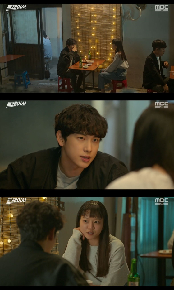 11일 방송된 MBC 금토 드라마 '트레이서에서는 서혜영(고아성 분)이 혼자 식당에서 술을 마시고 있는 황동주(임시완 분)를 발견하는 모습이 담겼다.