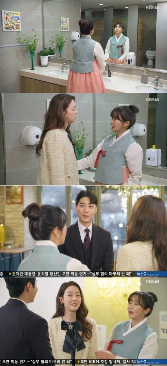 16일 오후 방송된 KBS 1TV 일일드라마 '국가대표 와이프'에서는 서보리(윤다영 분)가 서강림(심지호 분)과 최선해(오유나 분)의 결혼식장에서 헛구역질을 하는 모습이 그려졌다.