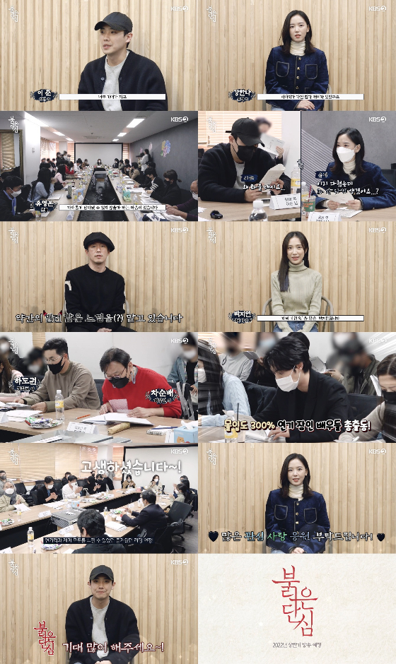 유영은 감독은 "인물마다 저마다의 단심을 가지고, 있어서 그게 다른 모양으로 발현이 되는 이야기를 다채롭게 담아낼 수 있지 않을까 하는 마음이 있습니다"라는 작품 소개말로 첫 인사를 건넸고, 이어 본격적인 대본 연습이 시작됐다.