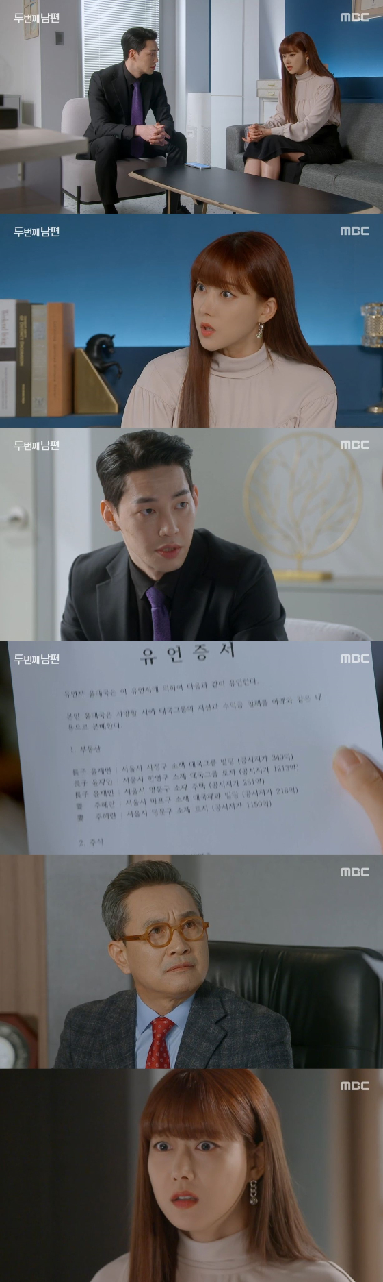 '두 번째 남편'에서 오승아가 정성모의 약점을 입수한 가운데, 정성모가 유언장을 수정한 사실을 오승아가 알게됐다.