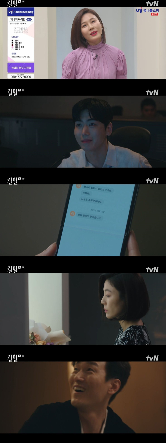 17일 오후 방송된 tvN 수목드라마 '킬힐'에서는 유니 홈쇼핑 쇼호스트 우현(김하늘 분)이 방송을 하는 모습이 담겼다.