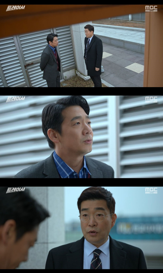 18일 방송된 MBC 금토 드라마 '트레이서'에서는 인태준(손현주 분)과 조진기(김도현 분)가 대화하는 모습이 담겼다.