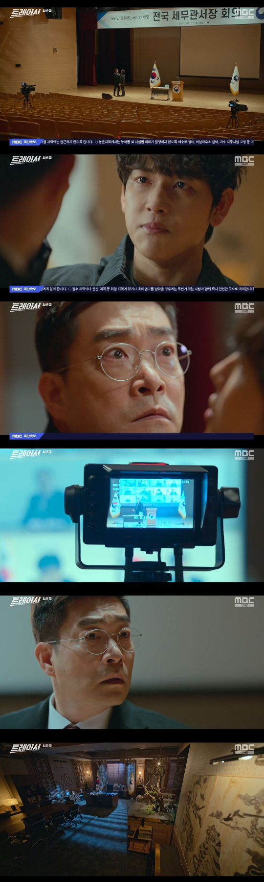 앞서 황동주는 전국 세무 관서장 회의장에서 인태준에게 갖고 있던 증거 영상을 내밀었다. 영상에는 류용신(이창훈 분)이 황철민의 차를 밀어버리는 장면이 담겨있었다. 해당 영상은 류용신의 비서 주영문이 찍어두고 남긴 것이었다.