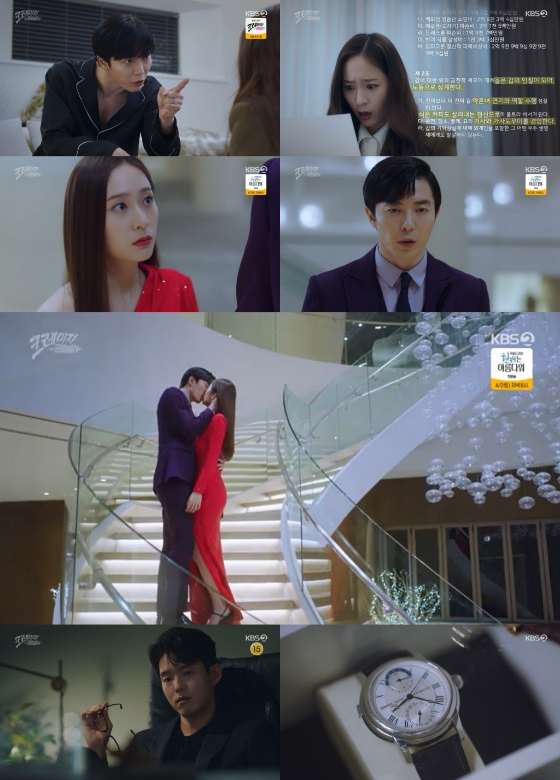 지난 29일 방송된 KBS 2TV 월화드라마 '크레이지 러브'(극본 김보겸, 연출 김정현, 제작 아크미디어) 8회에서 노고진(김재욱 분)과 이신아(정수정 분)의 관계가 다시 한번 역전됐다. 더 이상 신아 앞에서 기억 상실을 연기할 필요가 없다고 판단한 고진이 커밍아웃했기 때문. 신아 때문에 양파도 배터지게 먹고 개고생한 것도 모자라, 10억대 재산 피해까지 입었다며, 사기죄의 값을 치르게 하겠다는 협박이 이어졌다.