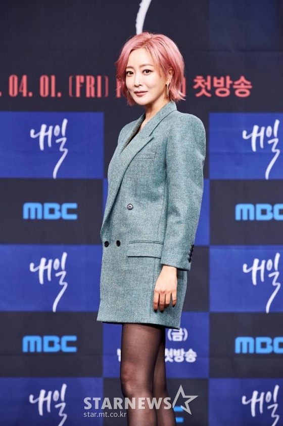 1일 네이버NOW 등을 통해 MBC 새 금토드라마 '내일'(연출 김태윤·성치욱, 극본 박란·박자경·김유진) 온라인 제작발표회가 진행됐다. 극 중 저승사자 구련 역을 맡은 김희선은 이번 작품을 위해 핑크 단발 헤어스타일로 파격적인 변신을 꾀했다.