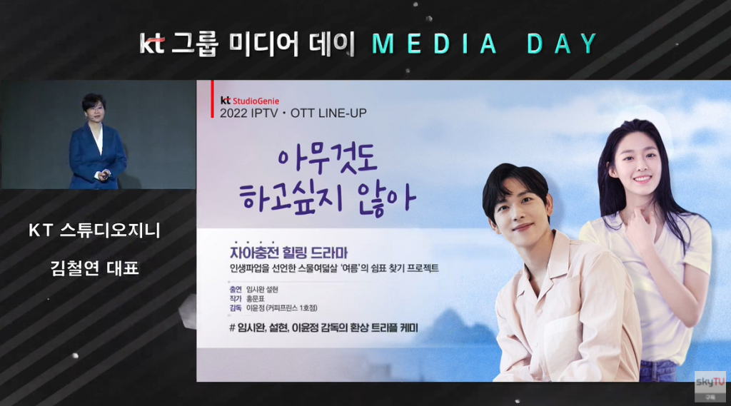 윤용필 대표는 "올해부터 ENA가 중심이 돼 CJ, 지상파, 글로벌 OTT 사업자와 공동제작을 확대할 예정이다. 또한 제작사와 IP지분을 공유하면서 성공했던 '나는 솔로'를 확대해 제작의 퀄리티를 높이고자 한다"이라며 "KT는 향후 3년간 콘텐츠에 과감하게 투자할 계획이다. 드라마를 30배, 예능 8배 비중을 확대할 것"이라고 설명했다.