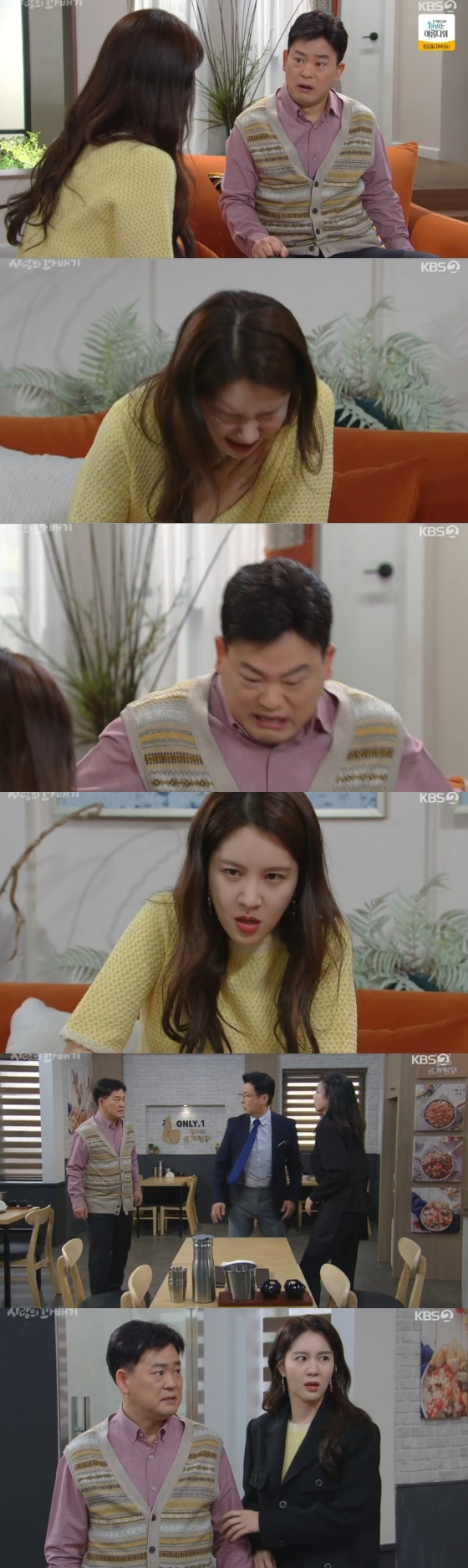 7일 오후 방송된 KBS 2TV 일일드라마 '사랑의 꽈배기'에서는 강윤아(손성윤 분)와 강남춘(이달형 분)이 대화하는 모습이 담겼다.