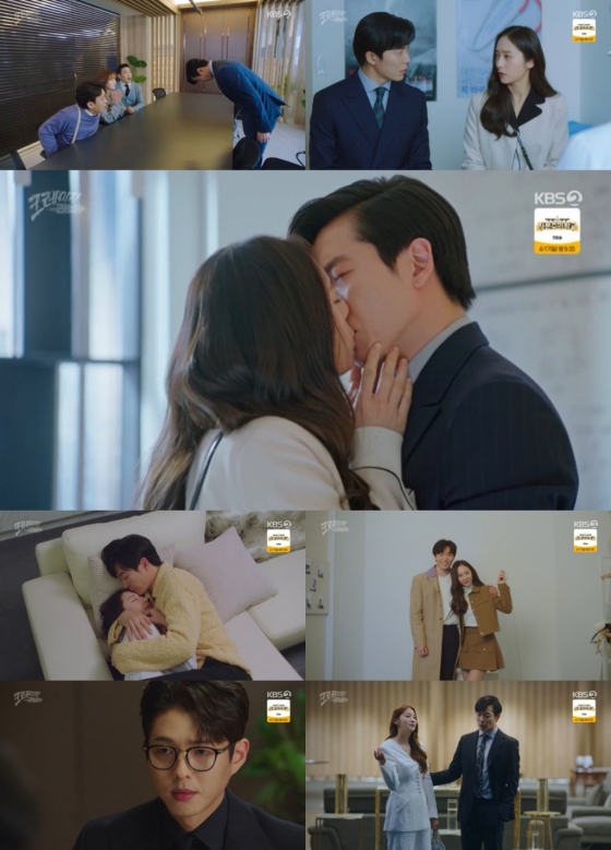 지난 12일 방송된 KBS 2TV 월화드라마 '크레이지 러브'(극본 김보겸, 연출 김정현, 최연수 제작 아크미디어) 12회에서 '미미 커플' 노고진(김재욱)과 이신아(정수정) 앞에 로맨스 꽃길이 펼쳐졌다. 고진은 신아의 출퇴근을 에스코트했고, 누가 보던지 대놓고 잡은 손을 놓지 않았다. 고탑(GOTOP) 교육의 대표 강사 3인방 김차배(정성호), 공희철(김기남), 이미쉘(이미진)을 불러 강사가 꿈인 신아를 위한 꿀팁 조언도 고개 숙여 부탁했다. 사랑꾼으로 거듭난 대표 남친의 특급 외조였다. 손수 요리도 선보였다. 알고 보니 요리 '똥손'이라 먹을 수 없는 음식이 나오긴 했지만, 그 마저도 신아의 얼굴에 웃음꽃을 피웠다.