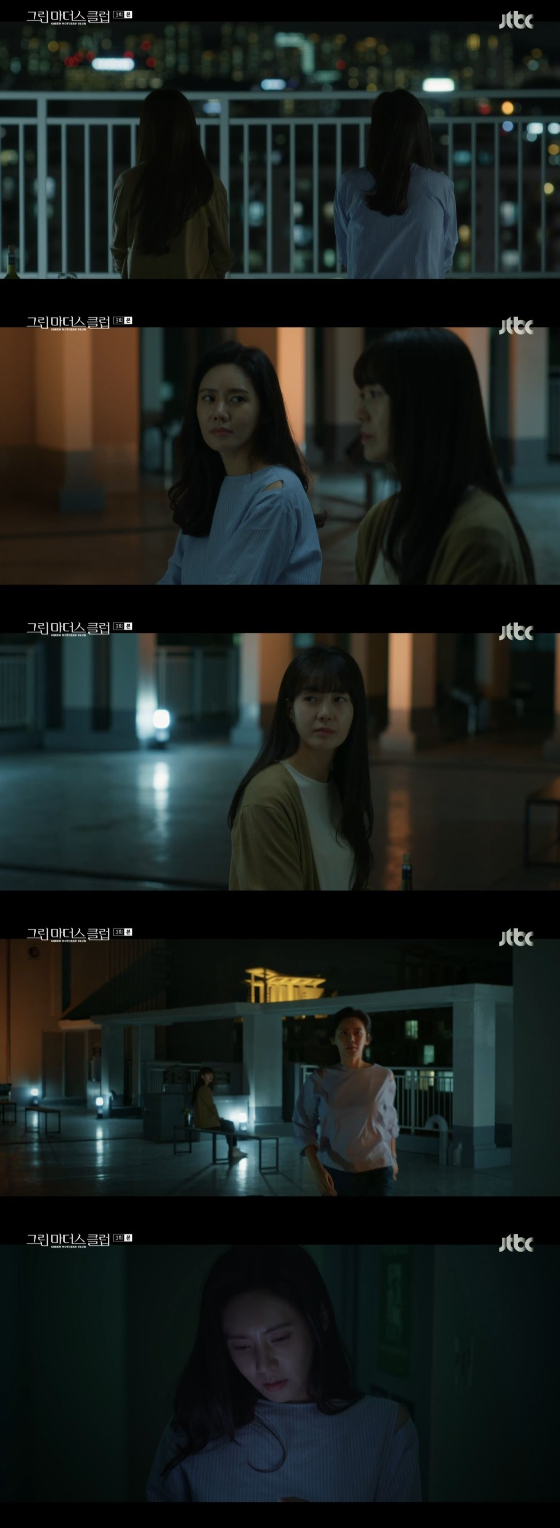13일 방송된 JTBC 수목드라마 '그린마더스클럽'에서는 이은표(이요원 분)와 변춘희(추자현 분)가 아파트 옥상에서 마주치는 모습이 담겼다.