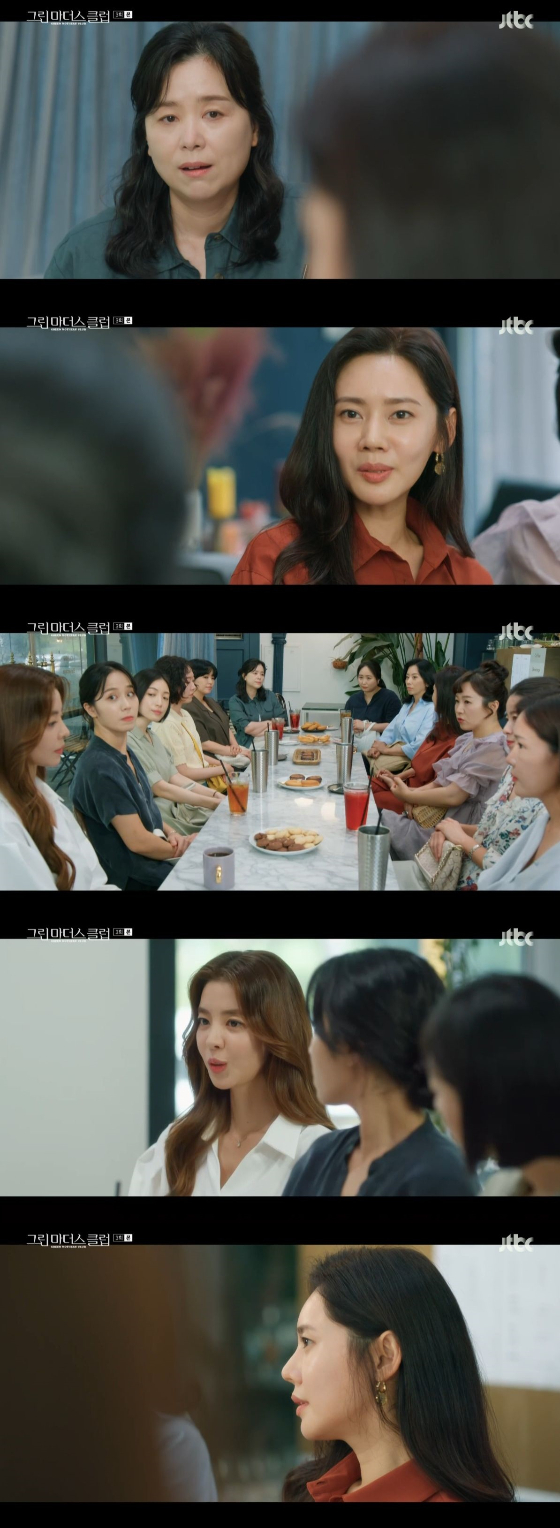 13일 방송된 JTBC 수목드라마 '그린마더스클럽'에서는 김영미(장혜진 분)와 변춘희(추자현 분), 서진하(김규리 분)를 포함한 학부모들이 모여 대화하는 모습이 담겼다.