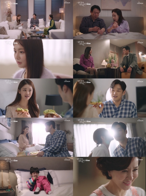 TV CHOSUN 주말미니시리즈 '결혼작사 이혼작곡3' 이가령과 이민영, 강신효가 행복한 재결합의 비밀이 들킬 위기에 놓였다.