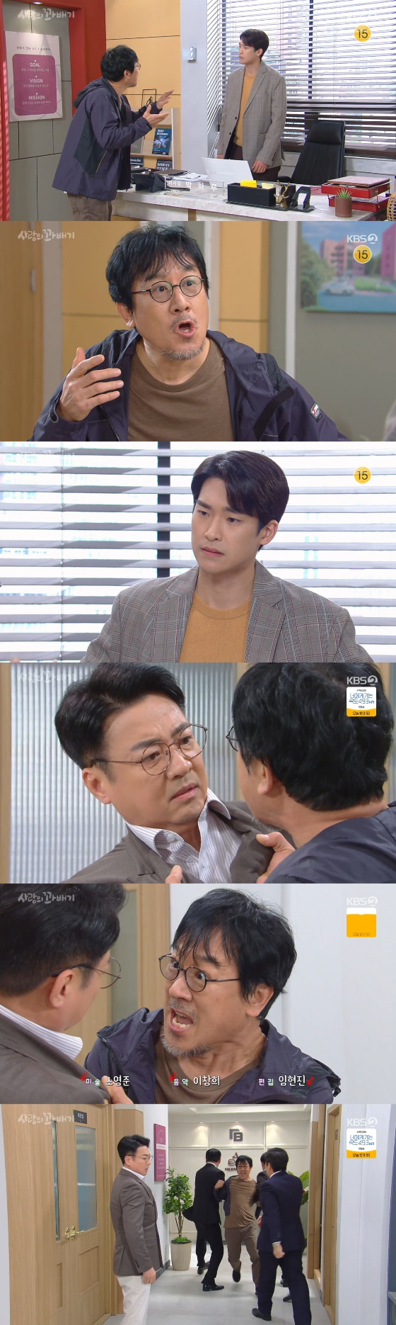 20일 오후 방송된 KBS 2TV 일일드라마 '사랑의 꽈배기'에서는 박기태(박철호 분)가 아들 박하루(김진엽 분)와 박하루의 대표이사실에서 대화하는 모습이 담겼다.