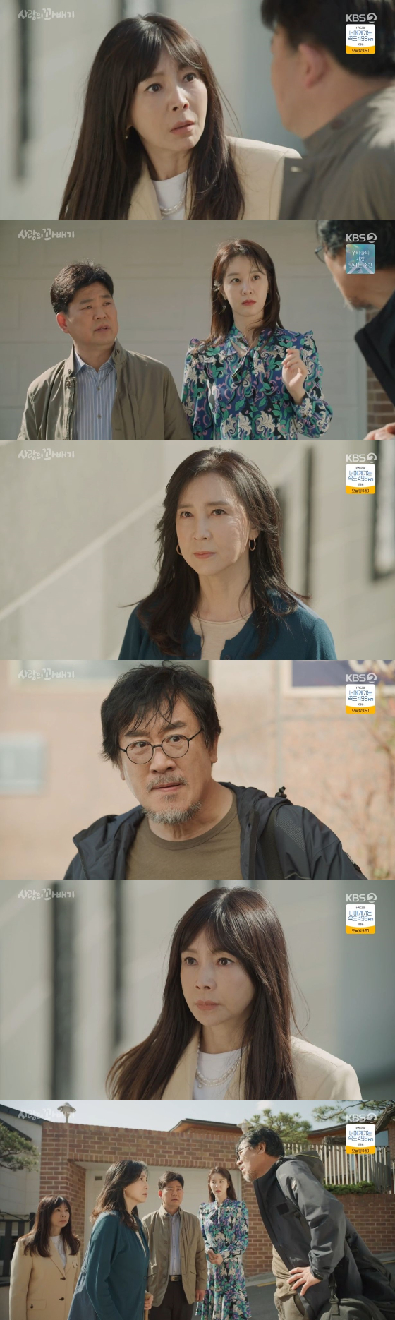 20일 오후 방송된 KBS 2TV 일일드라마 '사랑의 꽈배기'에서는 박기태(박철호 분)와 박희옥(황신혜 분)이 대화하는 모습이 담겼다.
