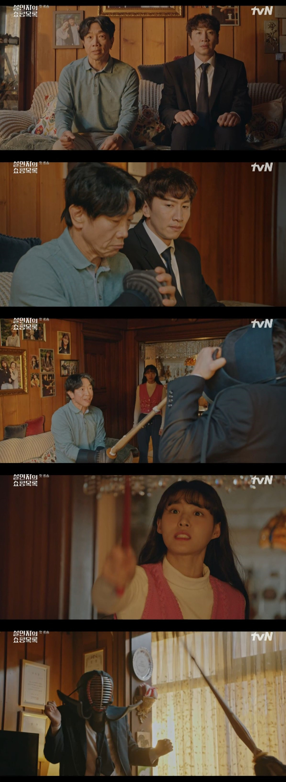 '살인자의 쇼핑목록'에서 이광수가 설현의 아버지 박철민에 죽도로 맞았다.