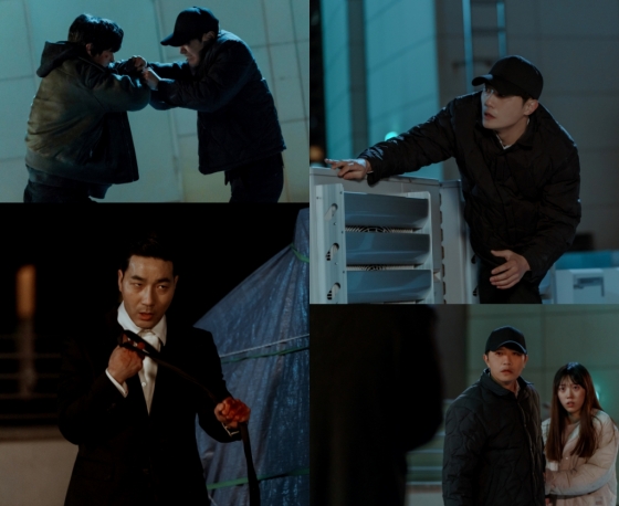 이에 공개된 사진 속에는 필사의 사투를 벌이고 있는 세 남자의 흔적이 고스란히 담겨 있다. 먼저 이호철은 언제나 그랬듯 딸을 최우선으로 보호하며 두 악인들과 꼿꼿이 대치, 그들 사이엔 일촉즉발의 위기감이 감돈다. 이어 격렬하게 몸싸움을 벌이는 권시우와 이호철의 모습과 더불어 손에 피를 묻힌 배태진의 살벌한 자태까지 세 남자의 승부가 쉽사리 나지 않을 것 같은 예감을 선사한다.