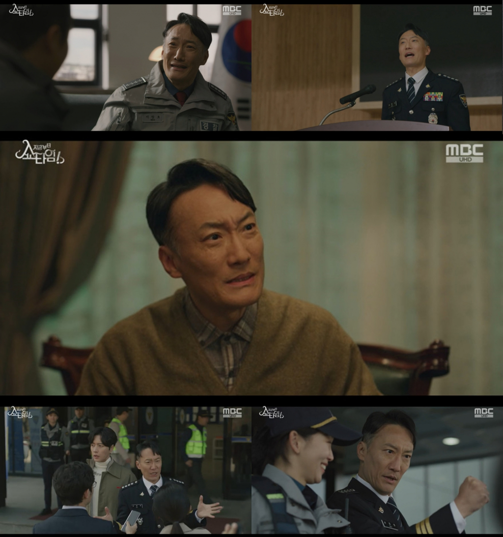 그런가 하면, 서창호는 고슬해(진기주 분)가 차차웅의 영입에 힘썼다고 하자 인자한 미소를 보이다가도, 차차웅이 그녀 없이는 시민경찰대를 하지 않겠다는 의사를 밝히자 떨떠름한 기색을 내비치기도. 경로 복지원에서 보여주기식 선행을 하며 사진 찍기에만 연연하는 서창호의 모습은 시청자들의 얄미움을 자아냈다. 정재성은 캐릭터가 느끼는 감정을 말투와 표정에서 고스란히 표현해내며 입체적인 캐릭터를 구현해냈다.
