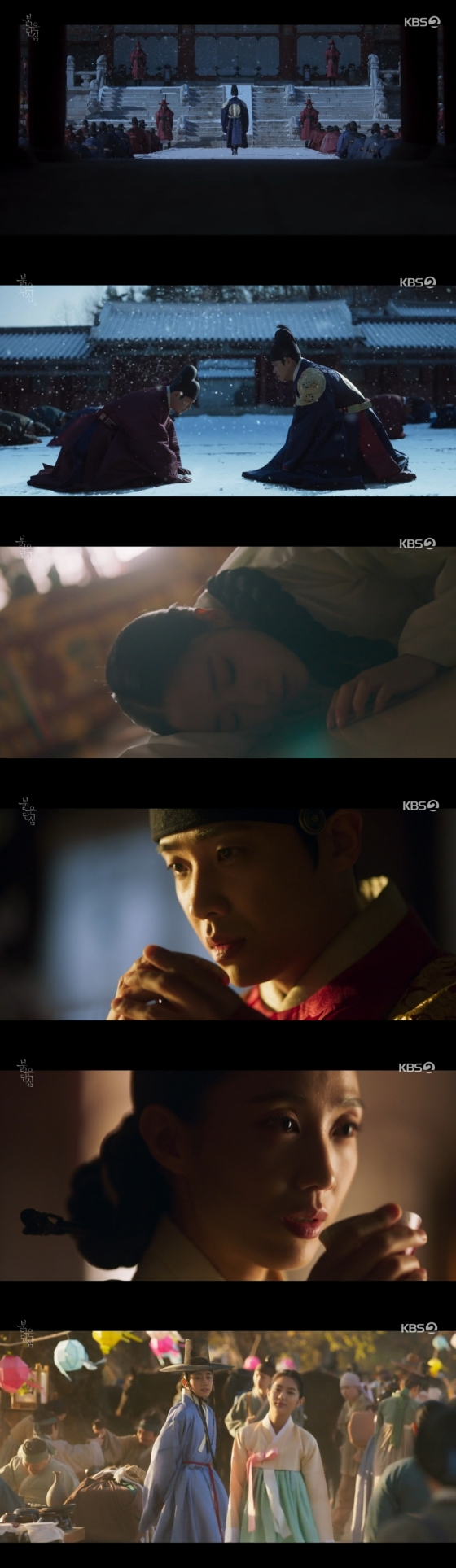 극 말미에는 7년 만에 재회한 이태와 유정(강한나 분)의 모습이 그려졌다. 이태는 환한 미소를 짓는 유정을 보며 속마음으로 '살아주어 고맙소. 나로 인해 몰락한, 연모하는 나의 빈이여'라고 해 여전히 유정을 향한 연모의 마음을 드러냈다.
