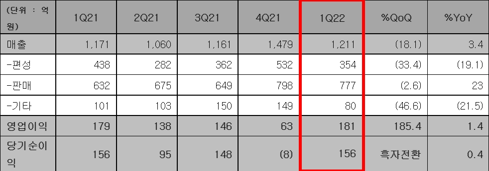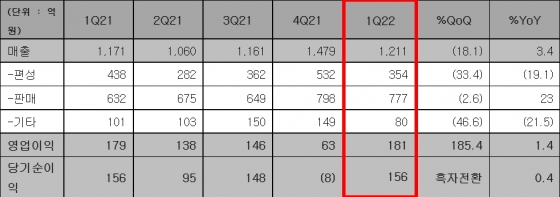 스튜디오드래곤은 2022년 1분기 총 1211억원의 매출액을 기록했다고 11일 밝혔다. 이는 전년 동기 대비 3.4% 증가한 수치다. 스튜디오드래곤은 "방영편수 감소에도 불구하고 작품별 긍정적 성과 및 OTT 오리지널 콘텐츠 유통 확대에 힘입어 성장세를 기록했다"고 평했다.