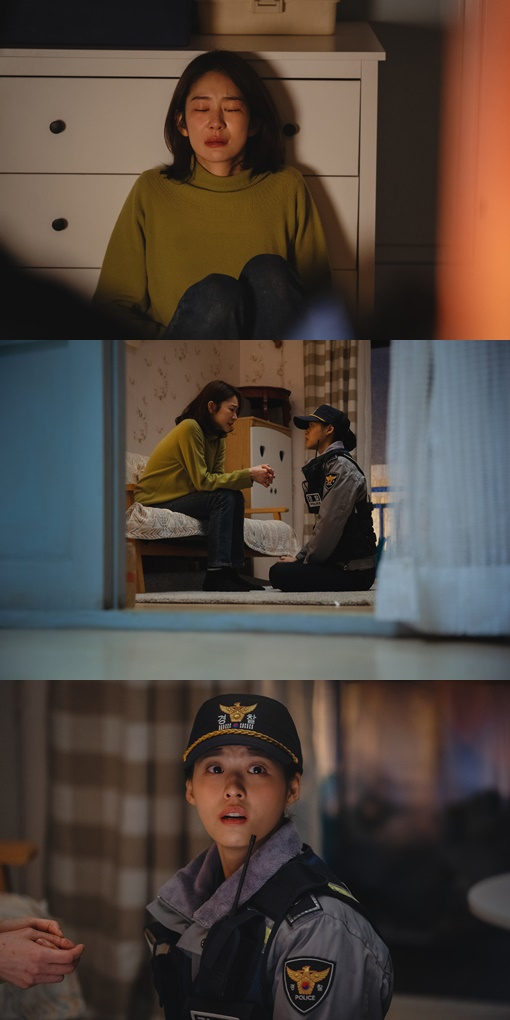 그런 가운데 공개된 스틸에서 오혜원은 초조한 얼굴로 불안감을 표출하고 있다. 특히 온 몸이 꽁꽁 얼어붙은 듯 긴장하다 못해 경직되어 있어 그녀의 사연에 궁금증이 증폭된다. 이와 함께 이어진 스틸에는 김설현이 오혜원을 다독이고 있어 눈길을 끈다. 오혜원은 금방이라도 꾹꾹 참으려던 눈물을 쏟아낼 듯한 눈빛을 드리우고 이에 김설현은 걱정스러운 표정을 짓는다. 하지만 이도 잠시 김설현이 수상한 인기척을 들은 듯 현관문 쪽을 바라보며 흠칫 놀라고 있어 팽팽한 긴장감을 불어넣는다.
