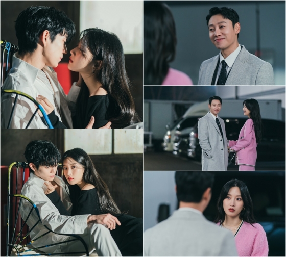 이 가운데 공개된 스틸 속에는 김영대(공태성 역), 문가영의 화보 촬영 현장과 함께, 김동욱, 문가영의 다정한 투샷이 담겨 있어 흥미를 높인다. 먼저 김영대, 문가영은 아찔한 분위기의 커플 화보를 촬영하고 있는데 화려한 비주얼과 섹시한 케미스트리가 시선을 강탈한다. 극 중 김영대와 문가영은 과거 공개연애를 했던 톱스타 커플. 당시 김영대에게 연애감정을 품고 있던 이성경에게 두 사람의 공개연애가 큰 상처가 되었던 바, 문가영의 등판이 이성경, 김영대의 애정전선에 어떤 영향을 미칠지 궁금증이 모인다.