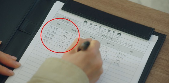 이날 방송된 '내일' 7화에서는 저승사자가 망자출입명부를 수기로 작성하는 모습이 그려졌다. 문제가 된 것은 망자 명부에 적힌 이름과 생년월일. 기입된 내용은 "이름 김태형, 생년월일 1971년 12월 31일, 사인 타살", "이름 김유림, 생년월일 1997년 9월 1일, 사인 타살" 등이다.