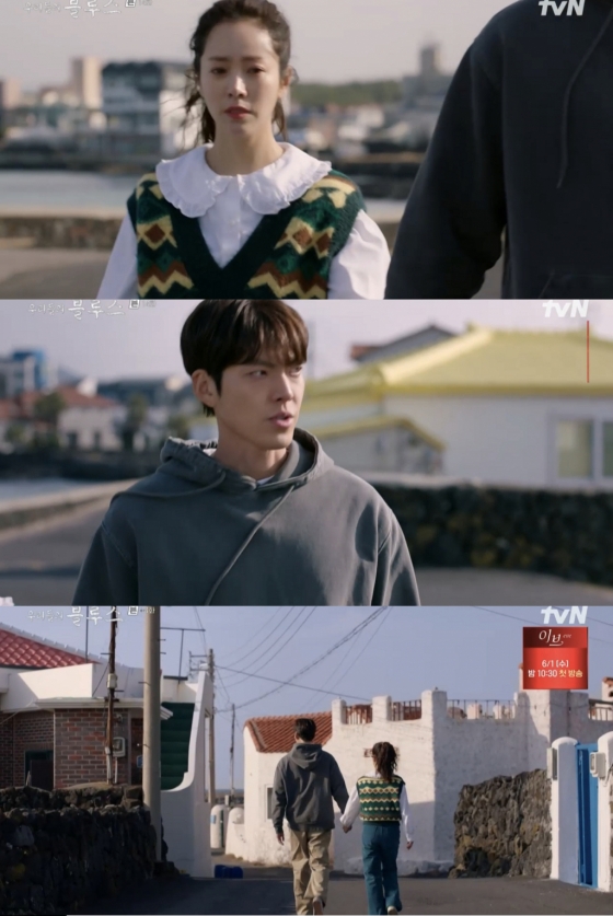 '우리들의 블루스' 김우빈이 불안해하는 한지민을 붙잡았다.