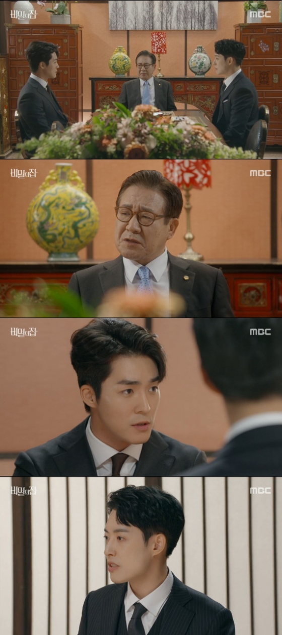 25일 오후 방송된 MBC 일일드라마 '비밀의 집'에서는 국회의원 후보 남태형(정헌 분)과 당 대표 김찬섭(정한용 분), 변호사 우지환(서하준 분)이 대화하는 모습이 담겼다.