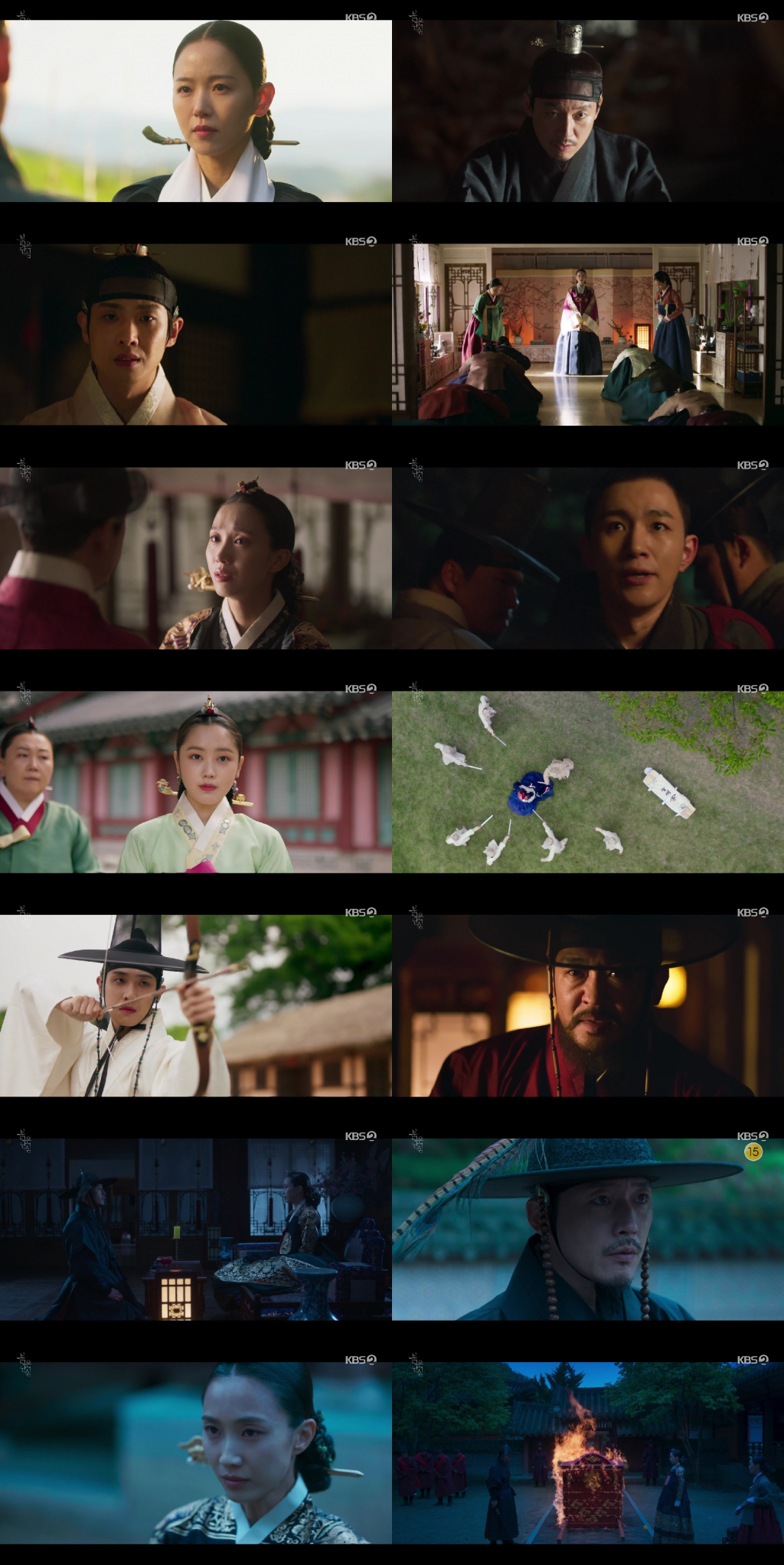 방송 말미, 밖으로 나온 대비는 "요승아 네가 이겼구나"라며 스산함을 풍겼고, 주저 없이 한상궁(박지아 분)이 들고 있던 등롱의 불을 꺼내 가마에 불을 붙였다. 그녀의 선택이 믿기지 않는 박계원과 그에 대한 분노와 원망으로 "이제 내가 무얼 할 것 같습니까"라며 타오르는 불길을 사이에 두고 마주 선 두 사람의 시선이 격렬히 부딪히는 모습은 역대급 '소름 엔딩'을 탄생시켰다.