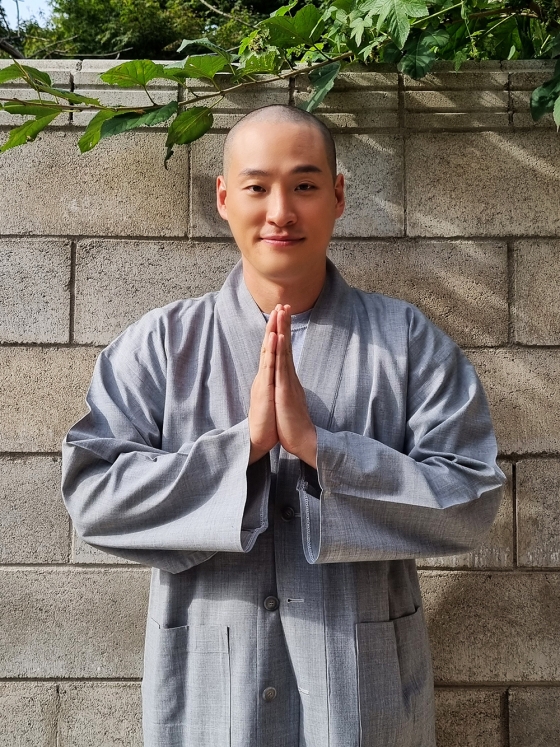 이날 공개한 사진 속 한규원은 법복을 입고 극 중 모습으로 두 손을 모은 뒤 미소지었다. 실제 스님과 같이 완전히 삭발한 모습이 시선을 집중시킨다.