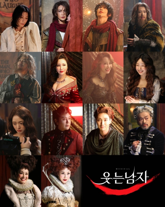 공개된 사진 속에는 그윈플렌 역의 박효신, 박은태, 박강현을 비롯해 우르수스 역의 민영기, 양준모, 조시아나 여공작 역의 신영숙, 김소향, 데아 역의 이수빈, 유소리, 데이빗 더리모어 경 역의 최성원, 김승대, 페드로 역의 이상준, 앤 여왕 역의 진도희, 김영주까지 작품의 주조연 14명이 프로필 촬영을 진행 중인 생생한 모습이 담겼다. 배우들은 현장 사진임에도 불구하고 이미 캐릭터에 온전히 몰입한 모습으로 보는 이의 시선을 사로잡는다.