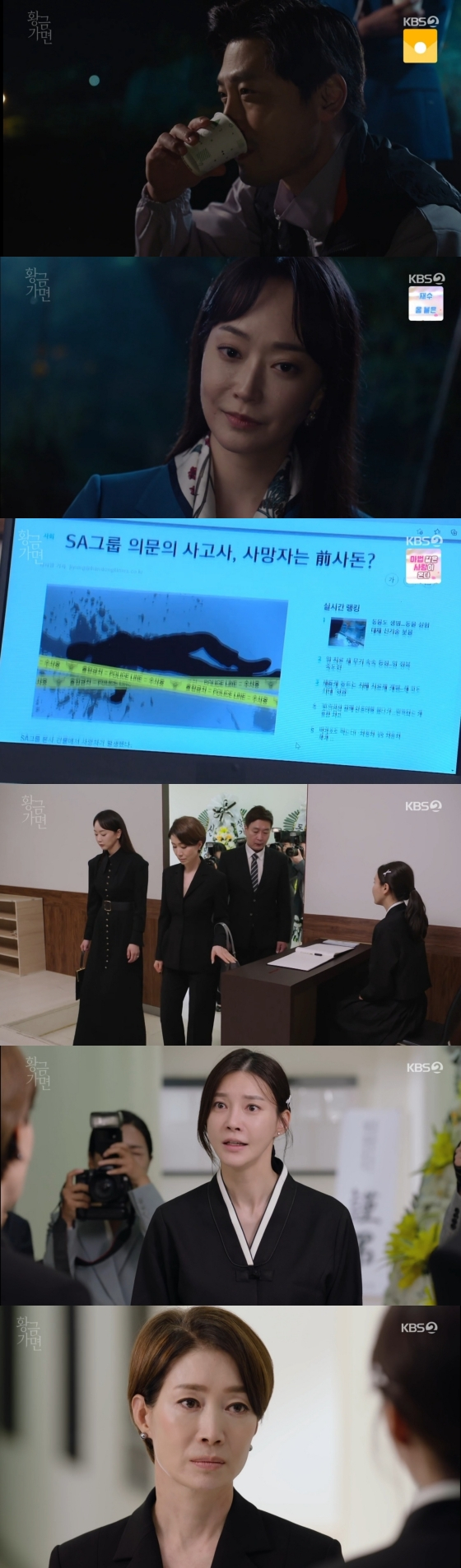 15일 오후 방송된 KBS 2TV 일일드라마 '황금 가면'에서는 부친 유대성(전인택 분)의 죽음에 의문을 갖는 유수연(차예련 분)의 모습이 담겼다.
