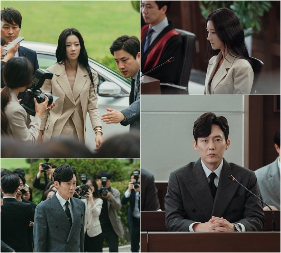 공개된 사진에는 법원에 출두한 라엘과 윤겸의 모습이 담겨있어 눈길을 끈다. 두 사람을 둘러싼 수많은 취재진의 면면이 대한민국을 뒤흔들 재판이 시작되었음을 예감케 한다. 그런가 하면 이어진 스틸 속 라엘과 은평은 재판 법정에서 각각 원고와 피고로 마주해 긴장감을 선사한다. 특히 윤겸은 무언가 굳게 마음을 먹은 듯 결의에 찬 표정과 흔들림 없는 눈빛을 띠어 관심을 높인다. 이에 라엘의 복수 소송 재판이 시작되며 얼마나 거센 소용돌이가 몰아 닥칠지, 라엘과 윤겸의 관계가 어떻게 변모될지 귀추가 주목된다.