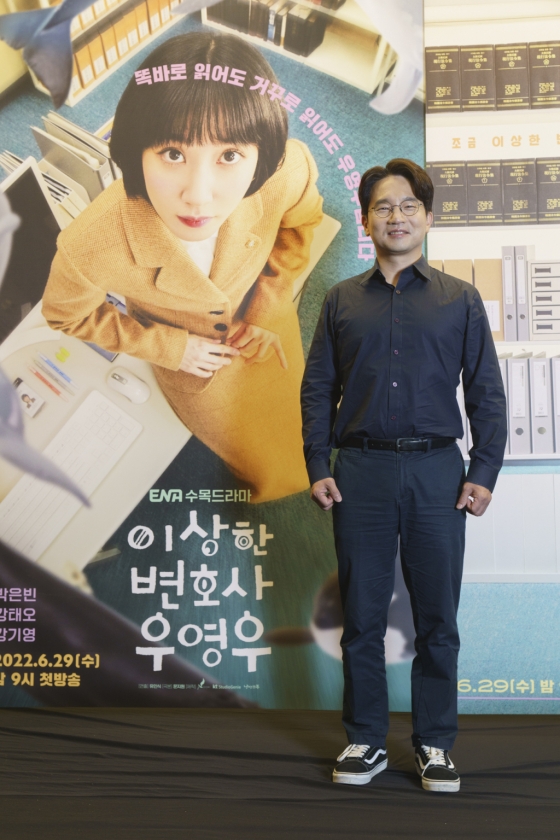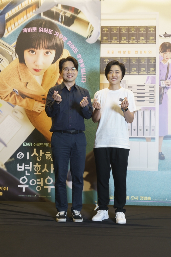 ENA 수목드라마 '이상한 변호사 우영우'(극본 문지원, 연출 유인식, 이하 '우영우')는 26일 오후 서울 마포구 스탠포드호텔코리아에서 기자간담회를 진행했다. 이날 문지원 작가와 유인식 감독이 참석했다.